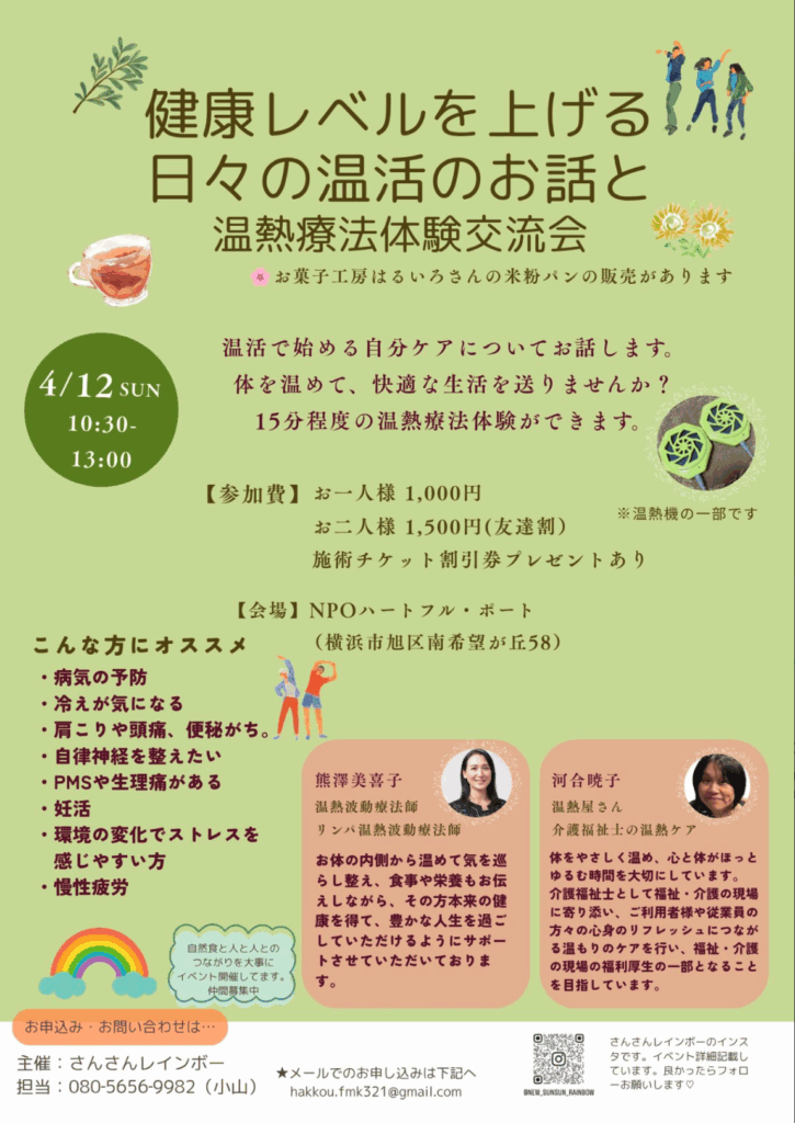 4/12 さんさんレインボー主催 温熱のお話会&体験交流会